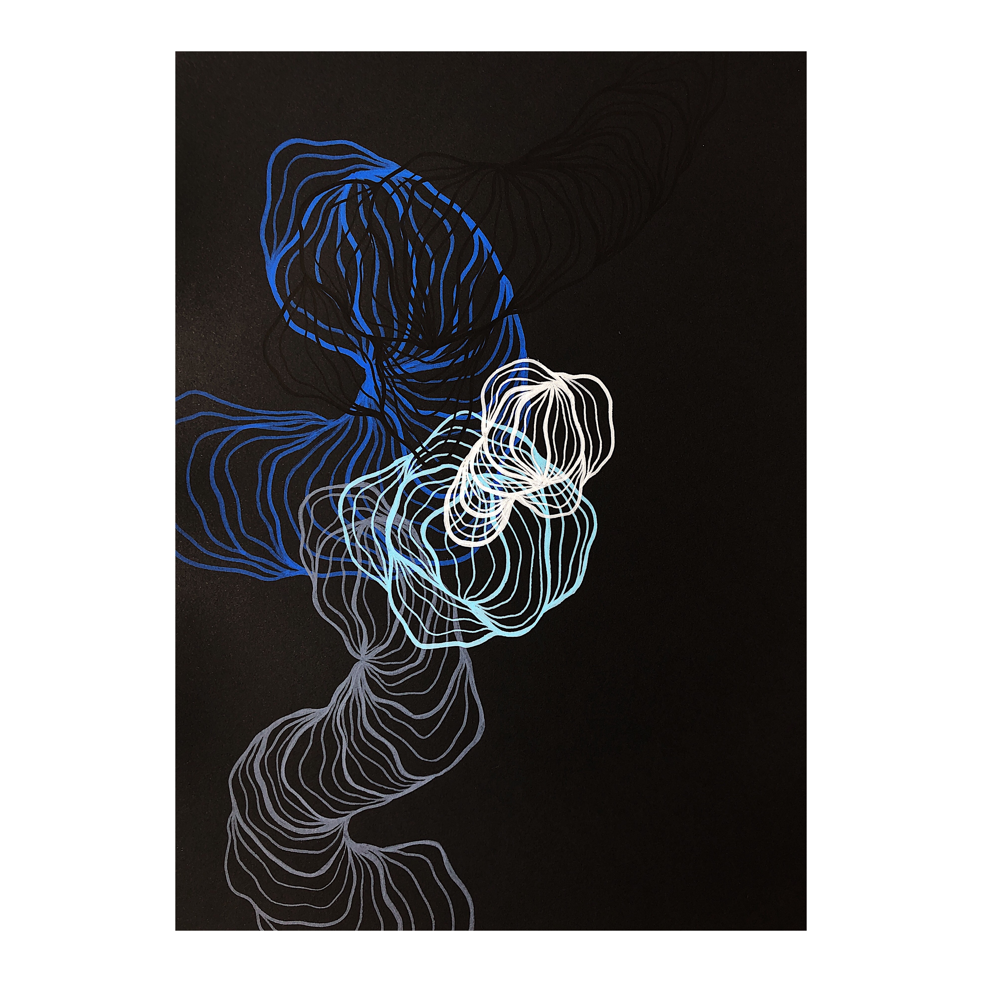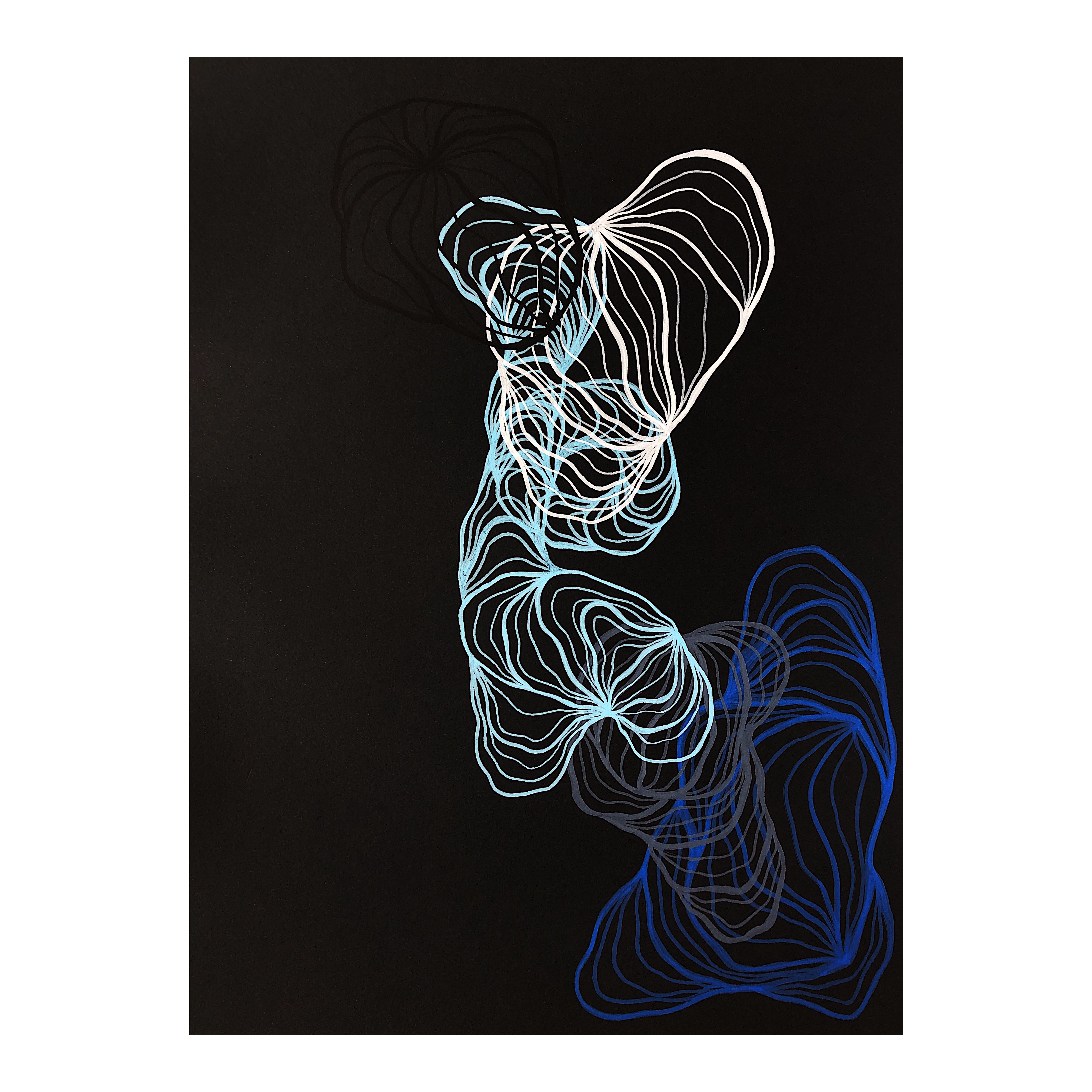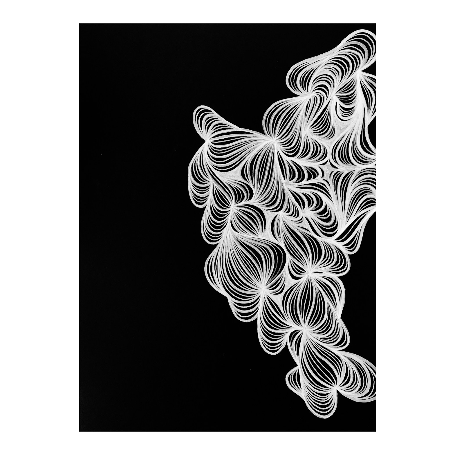 Each work is the trace of a disconnection or a connection (a meditation) that draws line by line the space and energy that are being recognized within an inhalation and an exhalation.